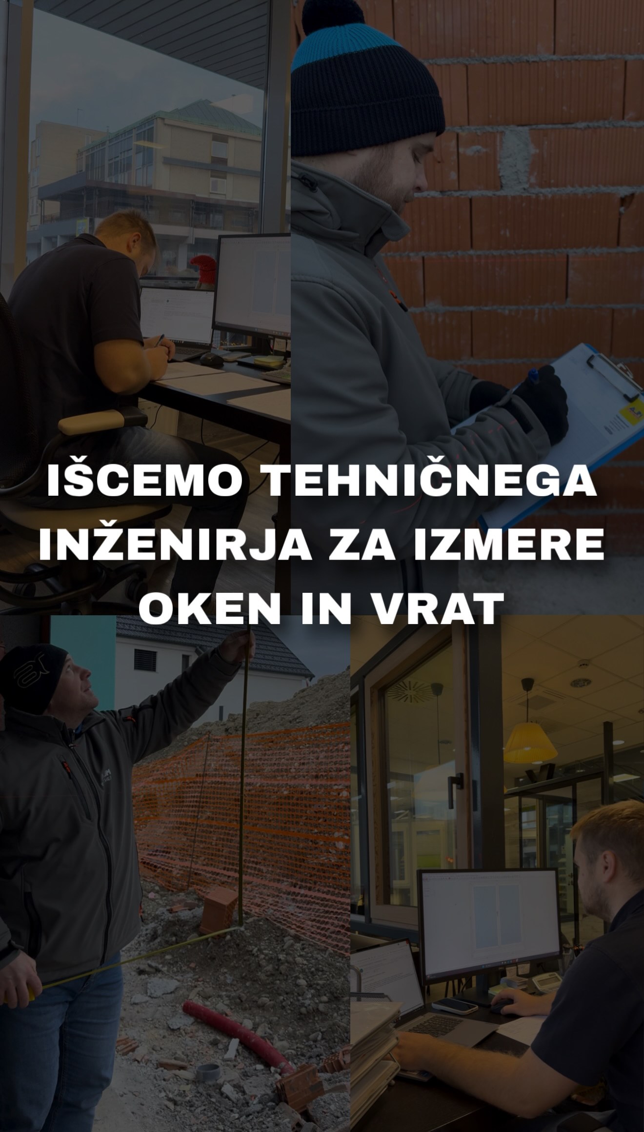 Zaradi povečanega obsega dela v našo ekipo vabimo tehničnega inženirja za izmere oken in vrat.
